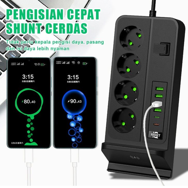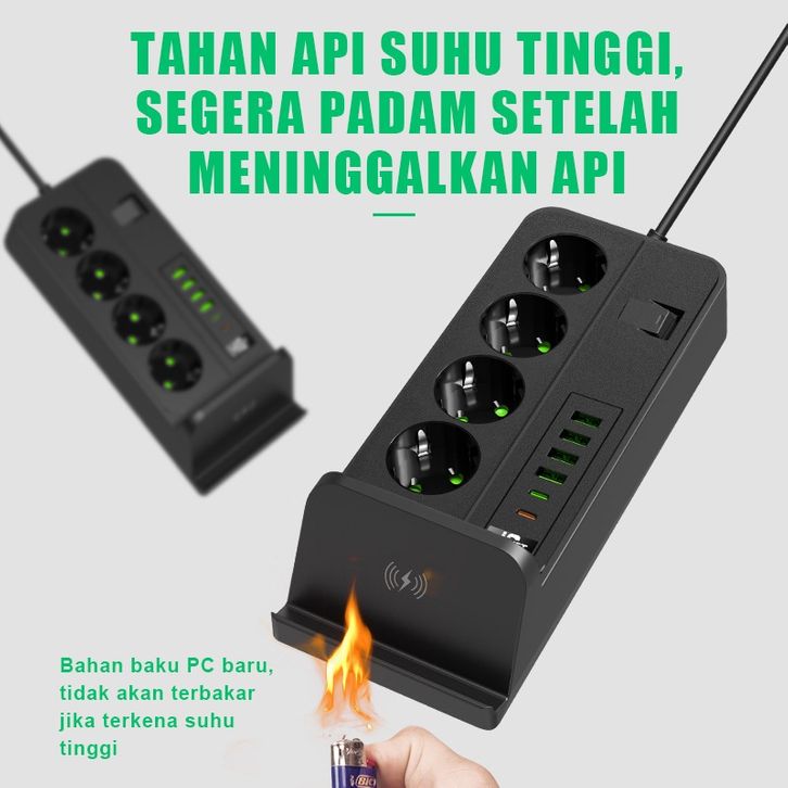 [Mall] Stop Kontak plus Wireless Charging dan 4 port USB Serbaguna Panjang Kabel 2 sd 5 Meter Socket 3 Colokan+ 1 TYPE-C