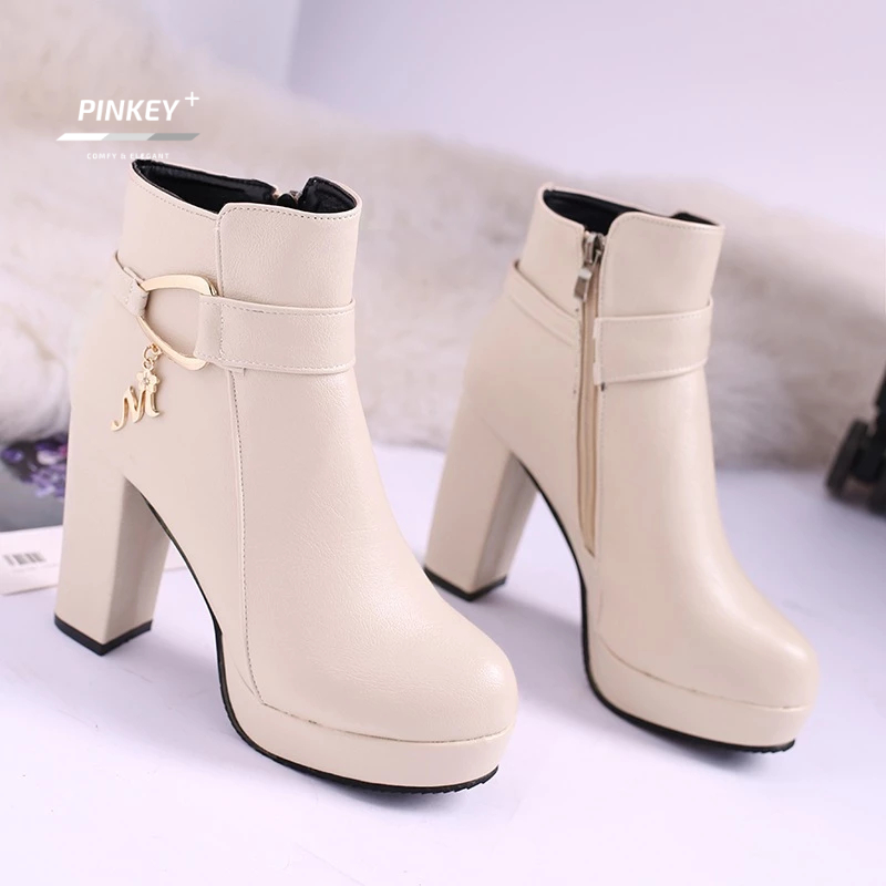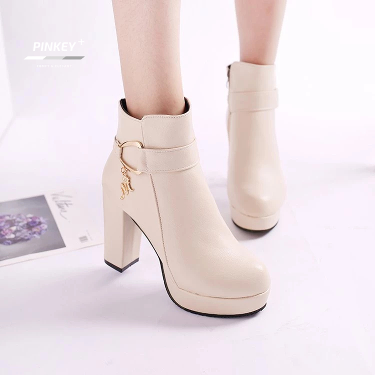 PINKEY P078 Fashion Women Boots Shoes PU Leather Hak Tinggi Wanita Tinggi 11cm