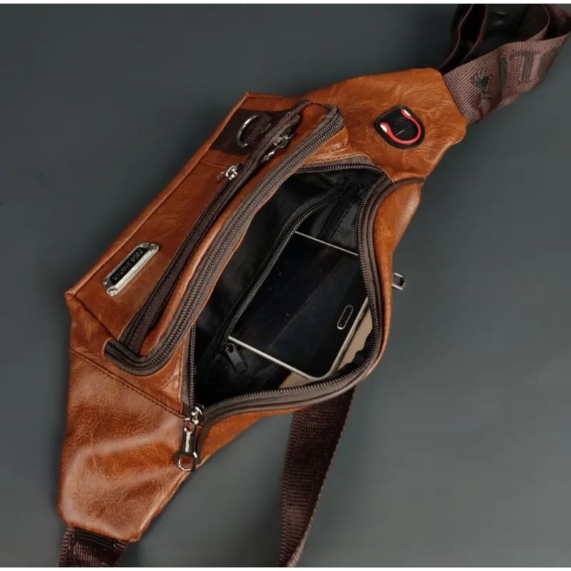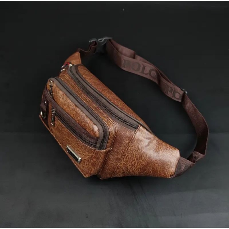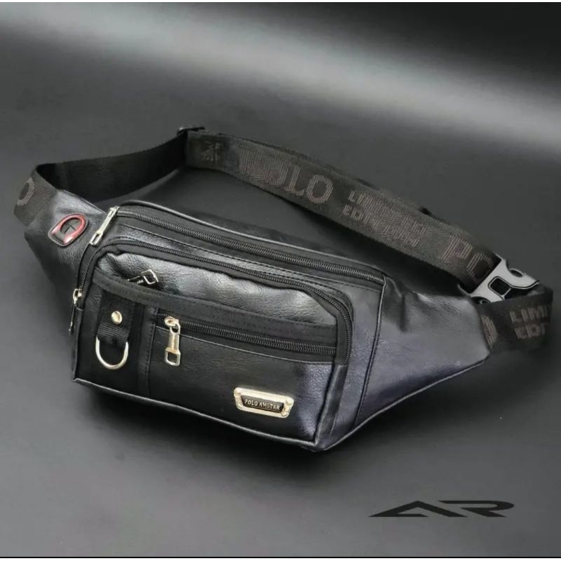 tas pria selempang multi fungsi waisbag original kulit pu POLO AMSTAR pria model terbaru