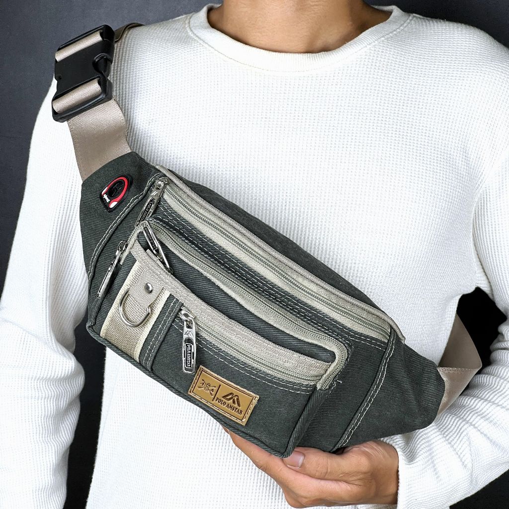 POLO AMSTAR Canvas Waistbag Tas Selempang Pria Casual Multifungsi Slingbag Kanvas Tas Pinggang Cowok