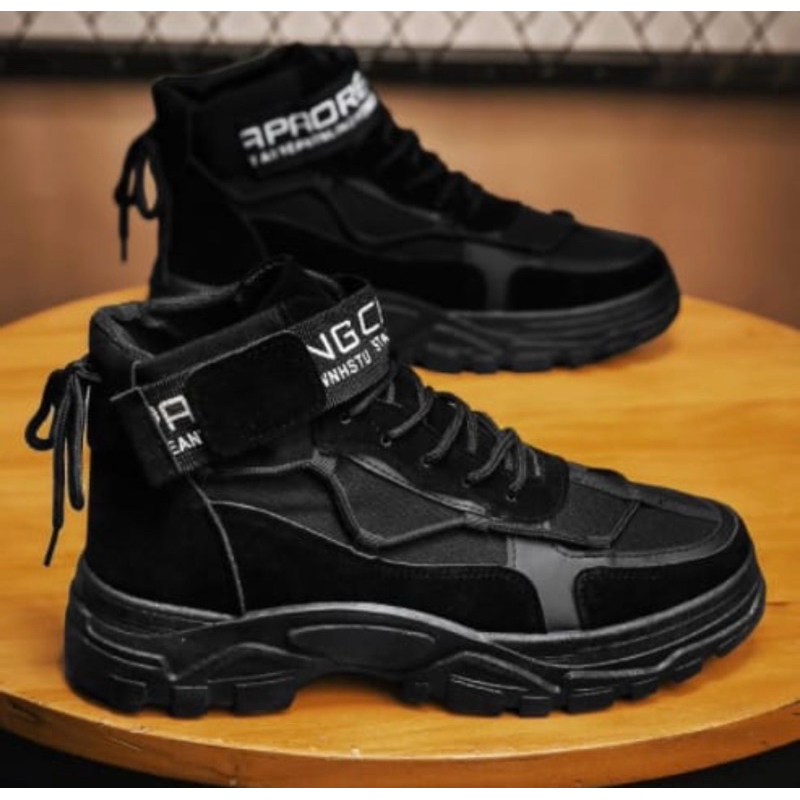 Sepatu boots casual import pria wanita sepatu hitam full terlaris sepatu kerja terbaru