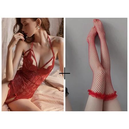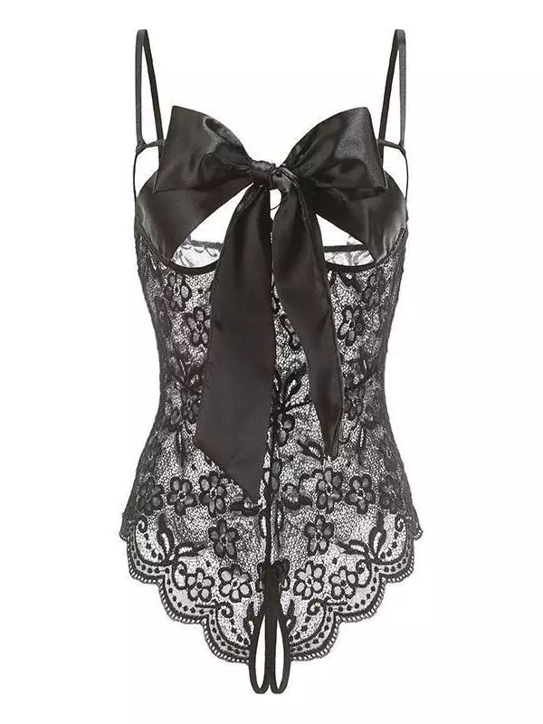 Lingerie Sexy Ikatan Simpul Depan Teddy Lingerie Siam Floral Renda Bodysuit Babydoll A5220 Lingerie seksi hot transparan