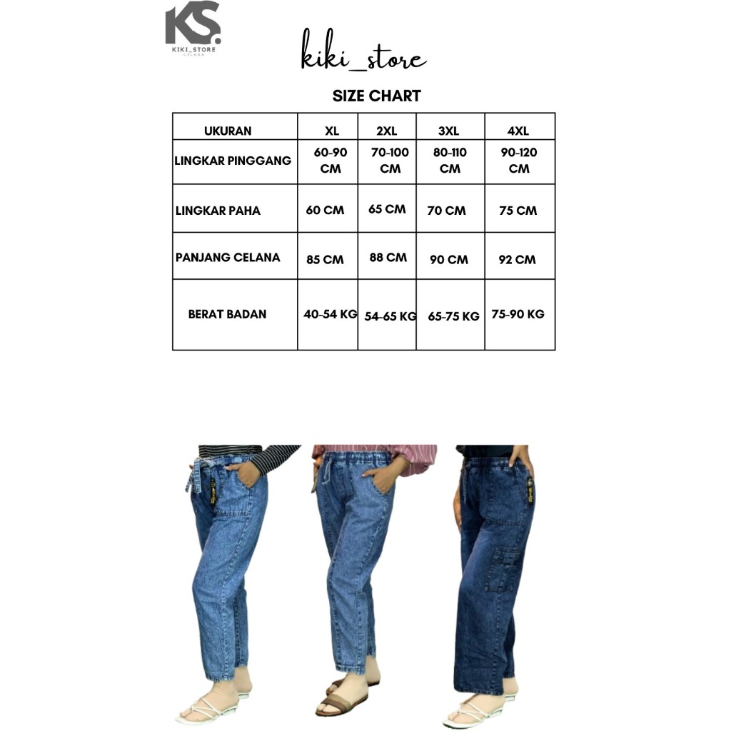 CELANA JEANS WANITA PANJANG PINGGANG FULL KARET BORDIL BUNGA