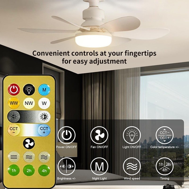 【aransi 30 tahun】Kipas Angin Plafon Lampu DenganE27 remote control Lampu kipas langit-langit multifungsi Lampu kipas rem