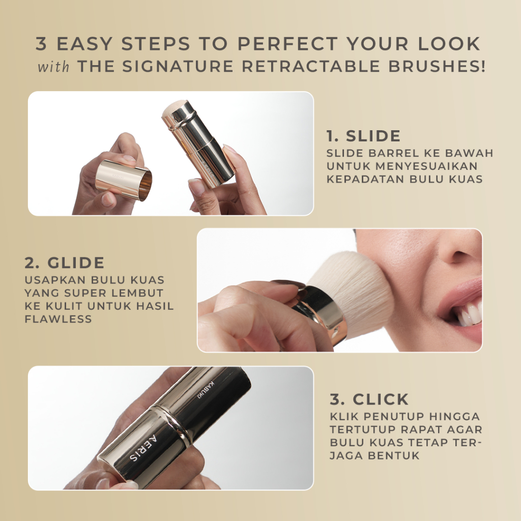 The Signature Retractable Brushes | Brush Make Up Premium Lembut Multifungsi Travel Portable untuk Bedak Foundation Blus