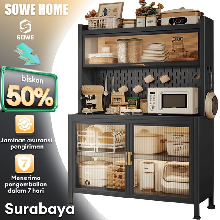 Lemari Dapur Minimalis Dengan Pintu Lemari Rak Piring Rak Kabinet Dapur Rak Penyimpanan Microwave Oven rak piring tutup