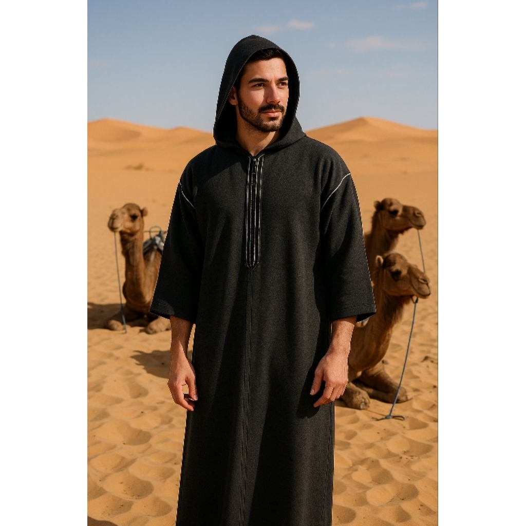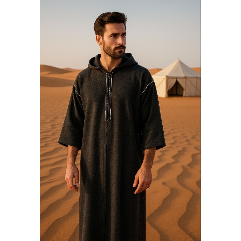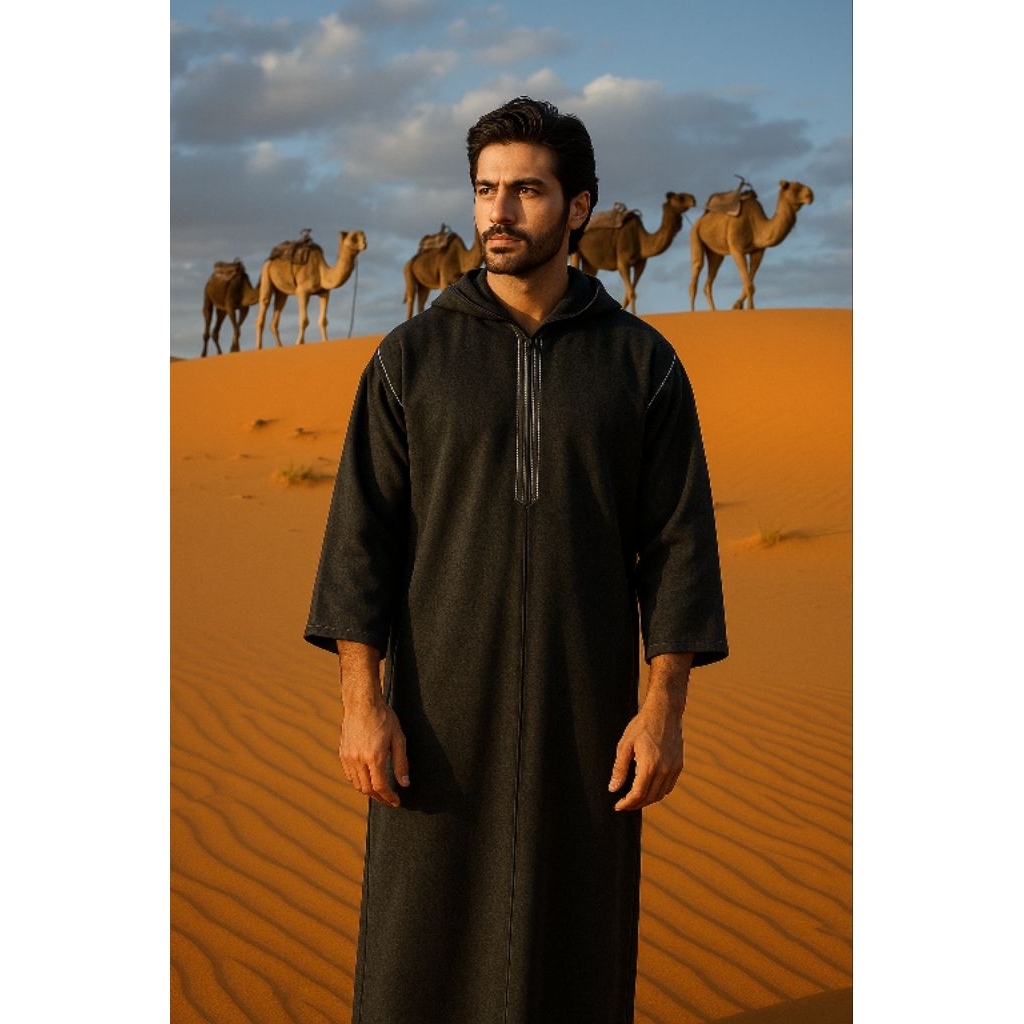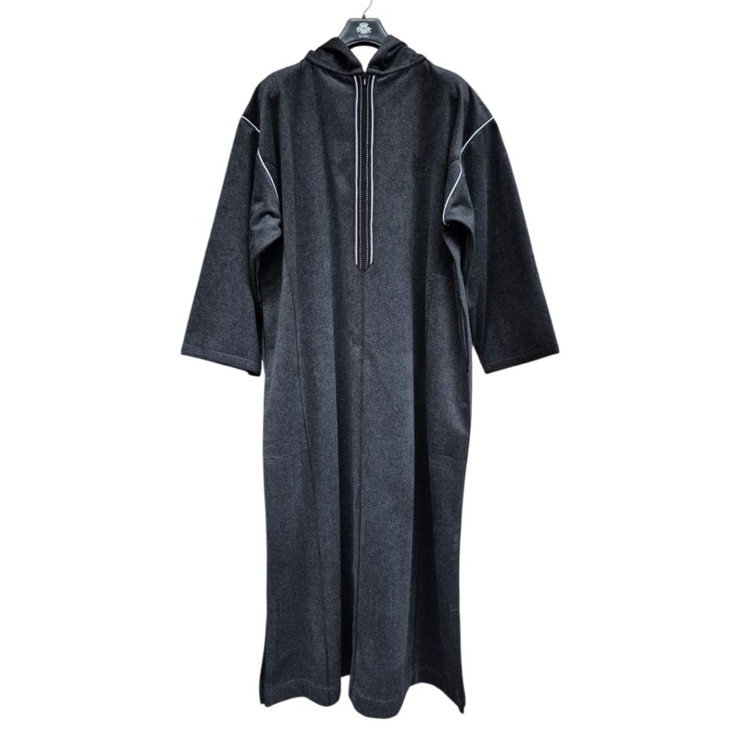 Djellaba.id Gamis Umroh Baju Muslim Jubah Sholat Hoodie Jalabah Kapucong Maroko Pria Wool Abu Tua