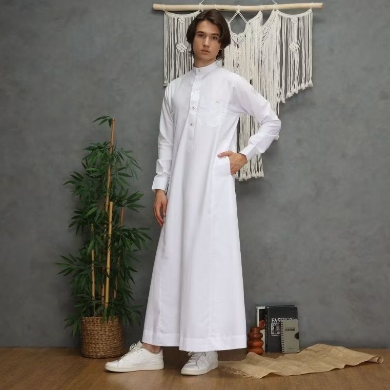 Jubah Pria Premium import / Gamis Pria Elegan / Jubah Pria Kekinian / Jubah Saudi Putih/Putih Tulang | Jubah/Thobe Laki