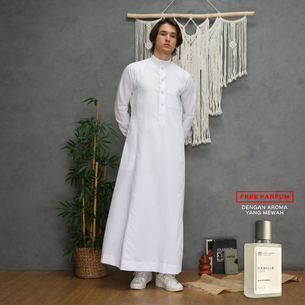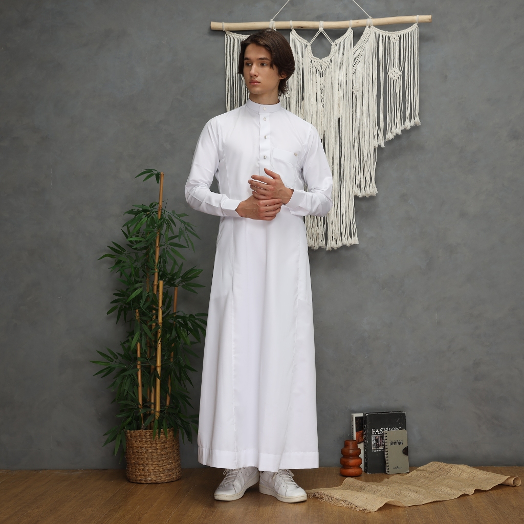 Gamis Thobe Jubah Pria Dewasa Putih Mewah Import Arab Saudi Rafiq LULU BRAND C11 Pure White