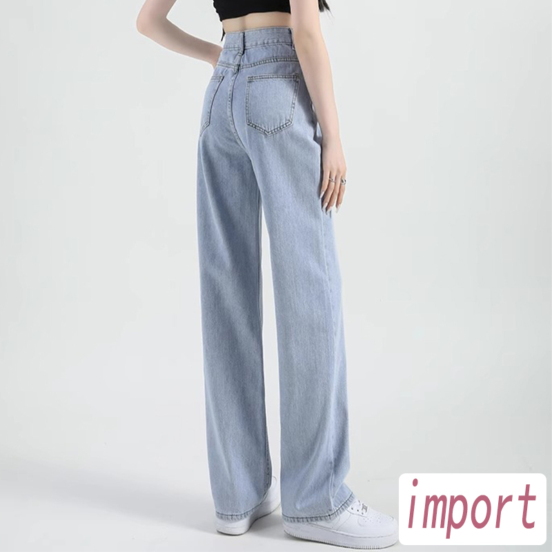 Celana jeans wanita celana panjang wanita jeans Original celana jeans gombrong wanita celana korean style kulot jeans kekinian celana cewek korea longgar Jeans Karet Jumbo Biru Muda Oversiz