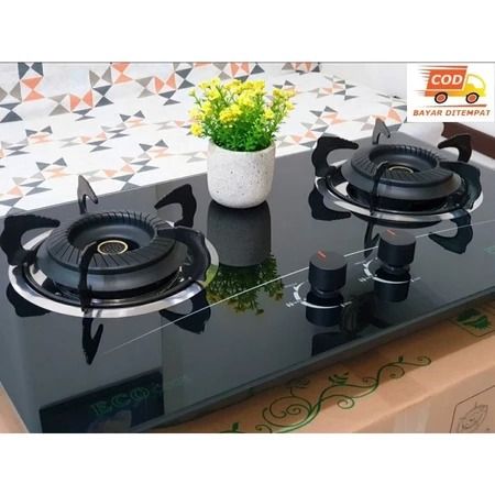 [ MEGA CENTER ] Kompor Gas Kaca Tanam 2 Tungku Eco Cook/POTENS /GMC EC2-21-Black Edition