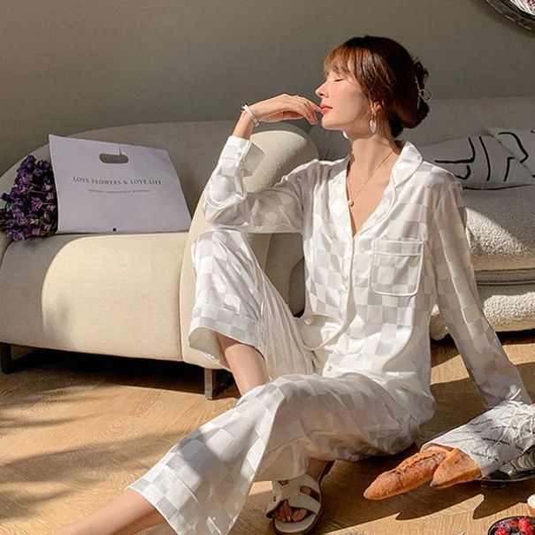 [ GUDANG SAUDARA ] Stelan Piyama Baju Tidur Wanita Lengan Panjang Celana Panjang Satin Import PSLUX