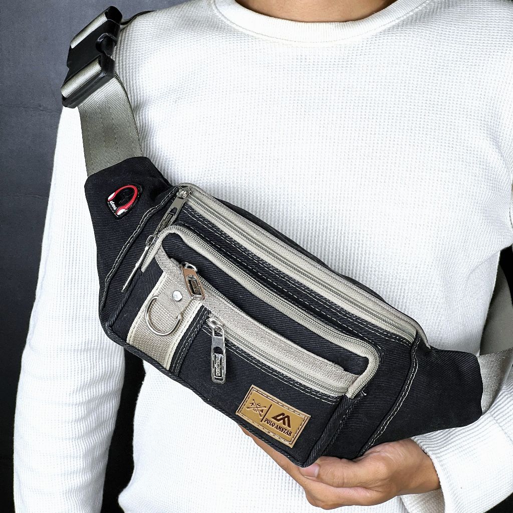 Tas Selempang Pria POLO AMSTAR Canvas Waistbag Slingbag Kanvas Tas Pinggang Cowok Casual Multifungsi