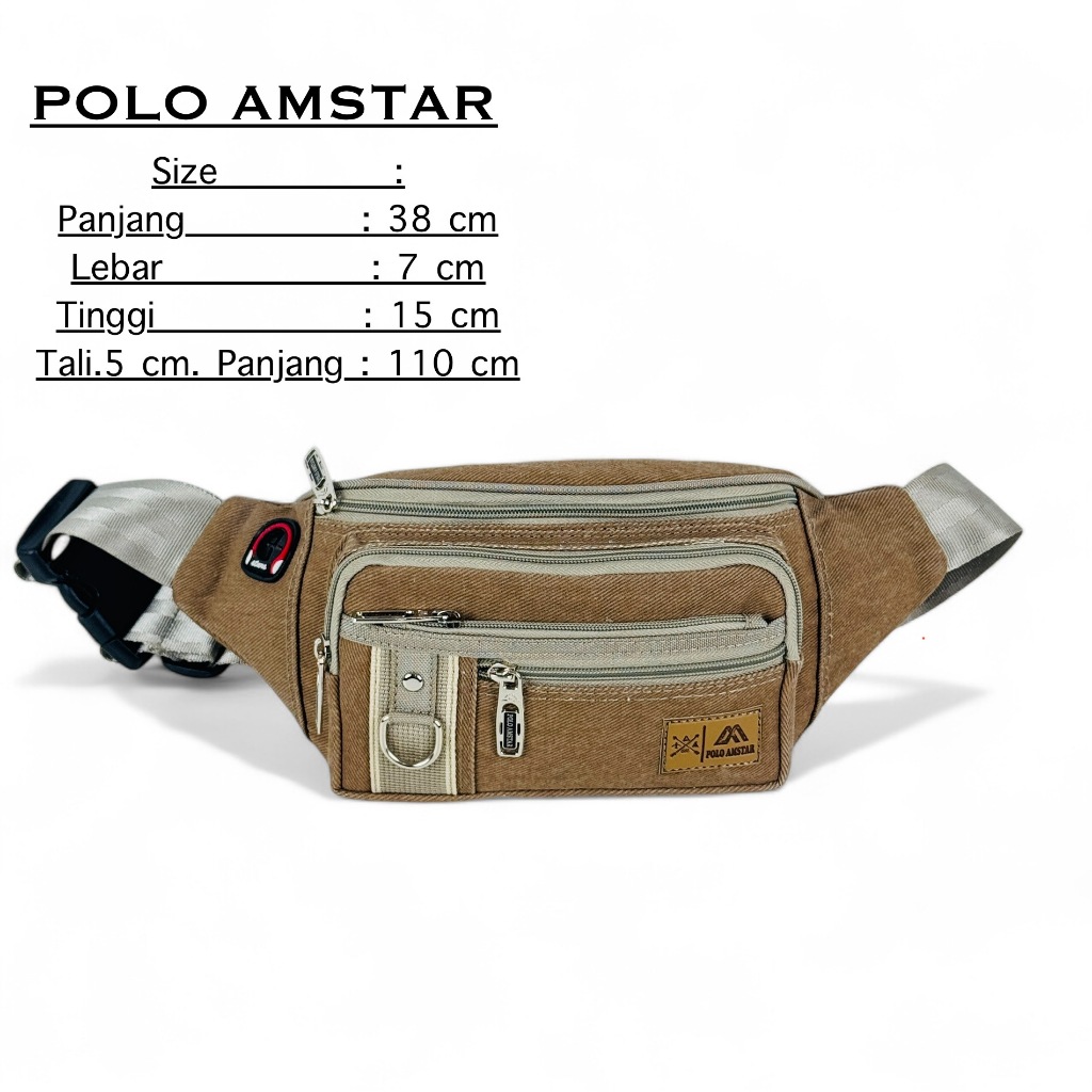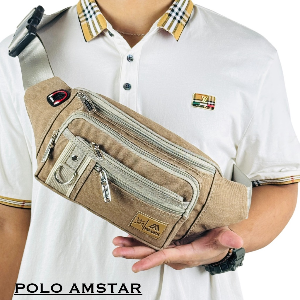POLO AMSTAR - TAS SELEMPANG PRIA MULTIFUNGSI TAS PINGGANG WAIST BAG CASUAL