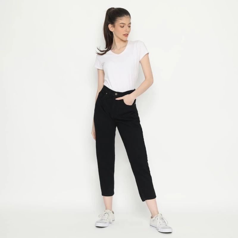 Celana Wanita Highwaist Boyfriend Jeans Hitam pekat