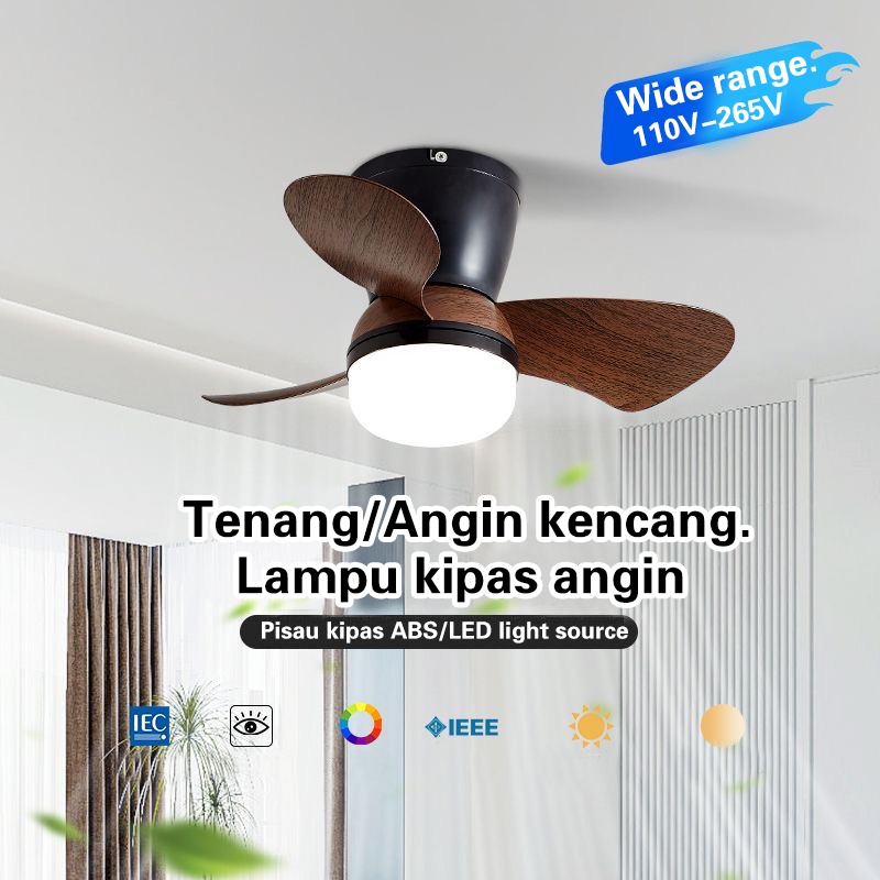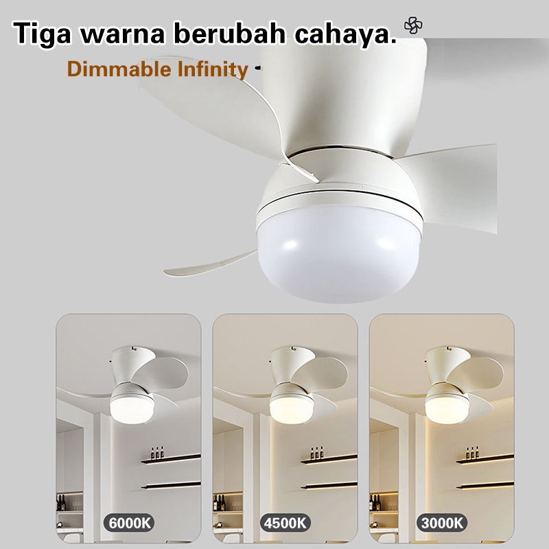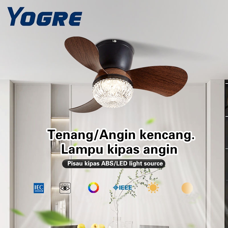 YOGRE Lampu Kipas Angin Plafon Gaya Retro 24Inci 3 Warna 24 Watt LED Lampu Ruang Tamu Kipas Angin Remote