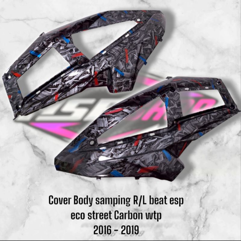 Cover body sambung kanan kiri R/L carbon wtp motif forged merah biru beat esp eco 2016 2017 2018 2019