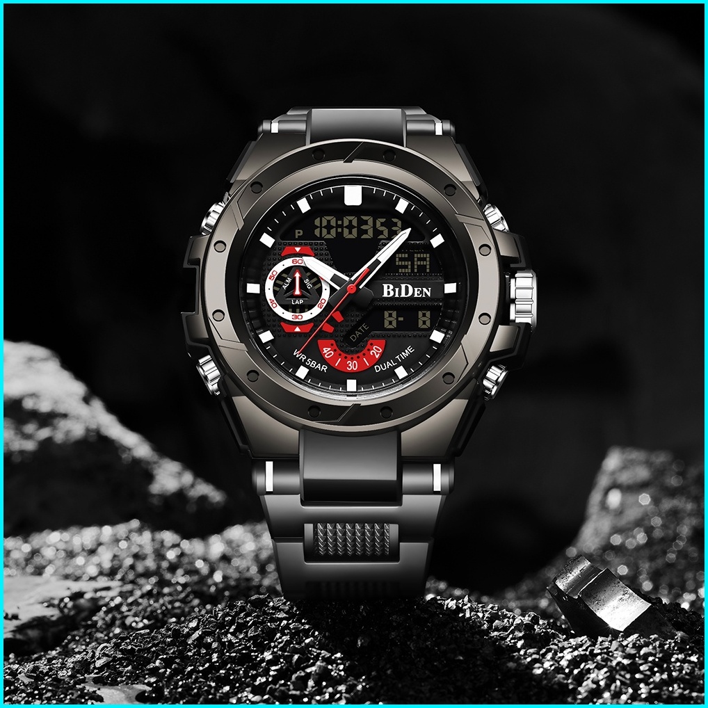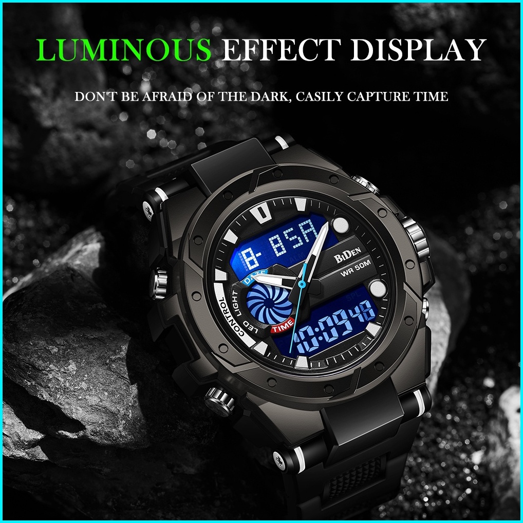 Biden Jam Tangan Pria Digital Anti Air Original Multifungsi Bercahaya Alarm Tali Silikon Jam Tangan Cowok