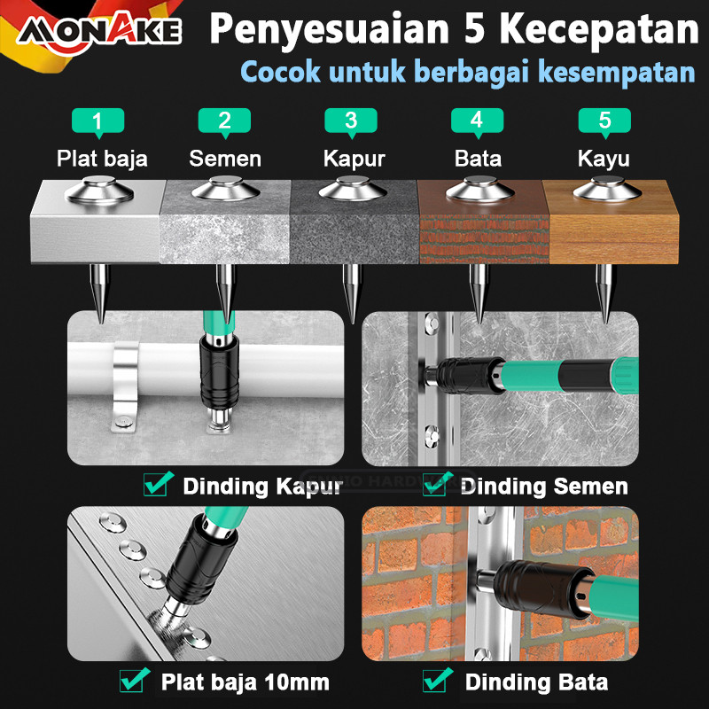 MONAKE Alat Jerman Nail gun Paku Pengencang Mesin Paku Beton Alat Pelubang Alat Paku Dinding Alat Paku Dinding Beton