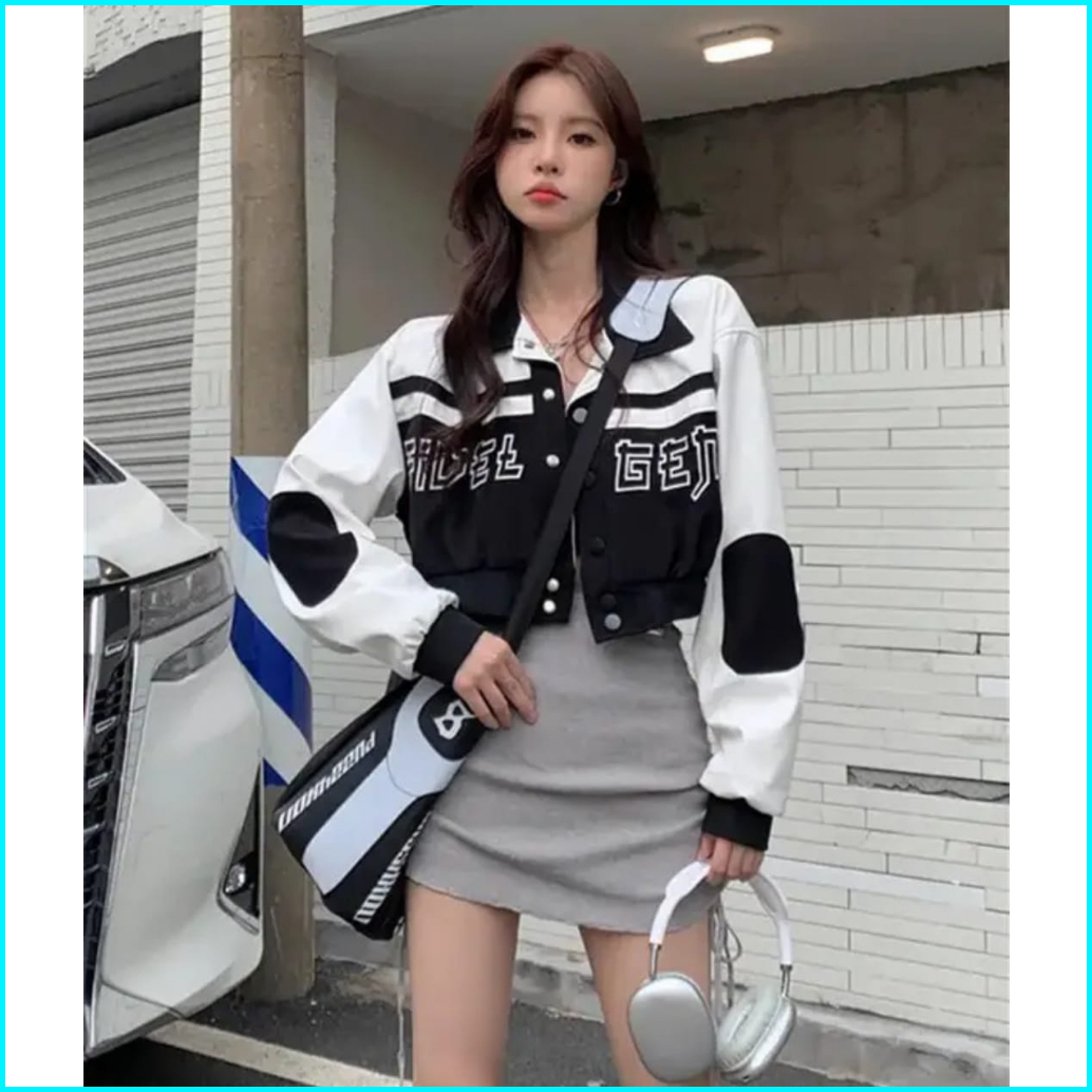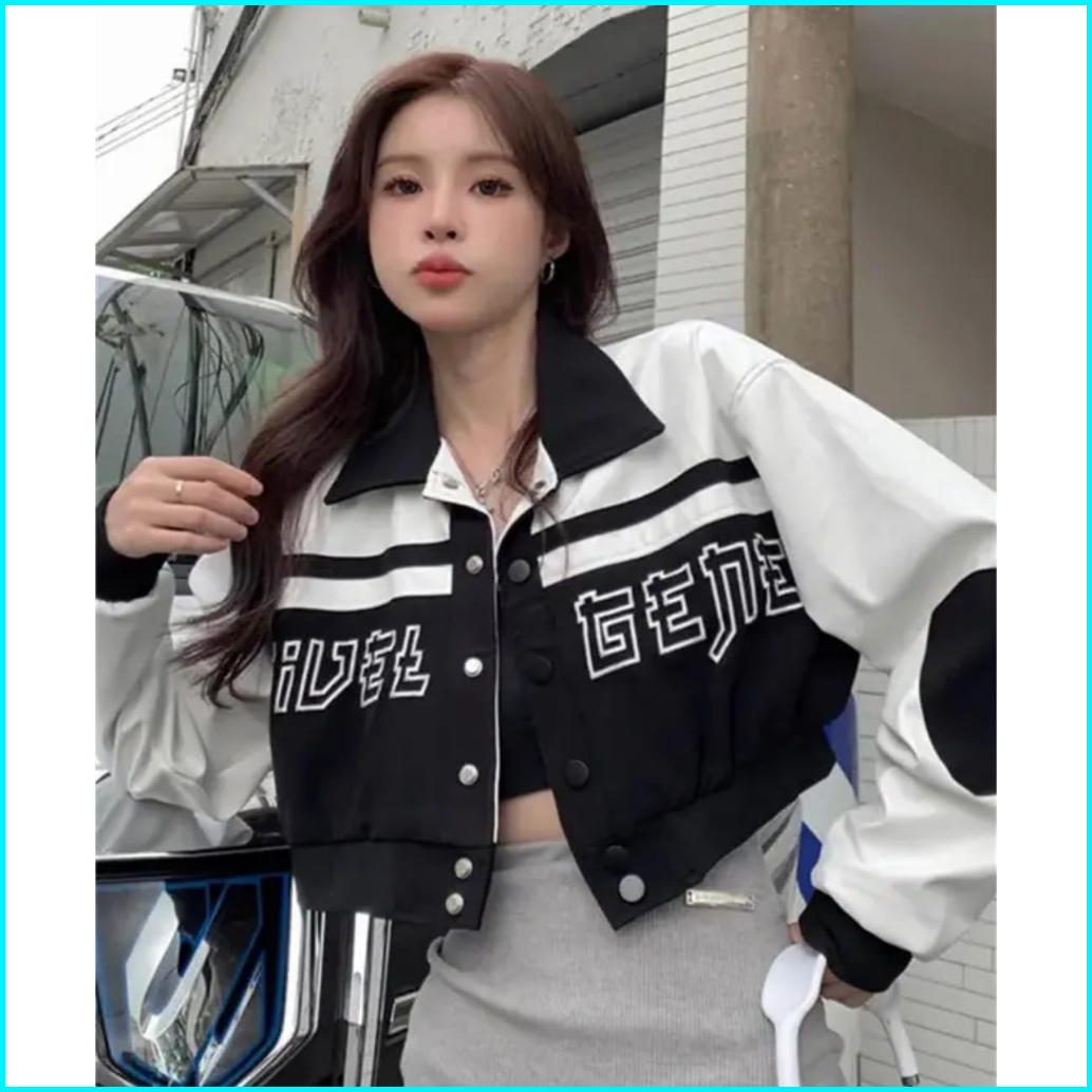 Jacket Crop Wanita Gaya Korean Style Lucu - Guci Croope Jacket Kerah Wanita Kekinian - Crop Top Sweater