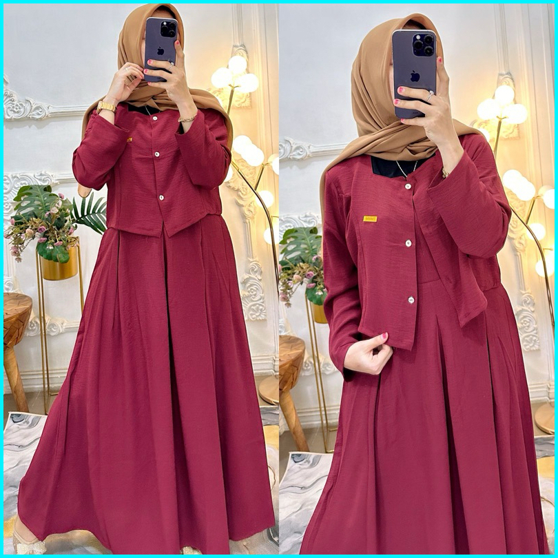 Oneset Overall Model 2in1 Bahan Crinkle Termurah Terbaru Terlaris Fashion Muslim