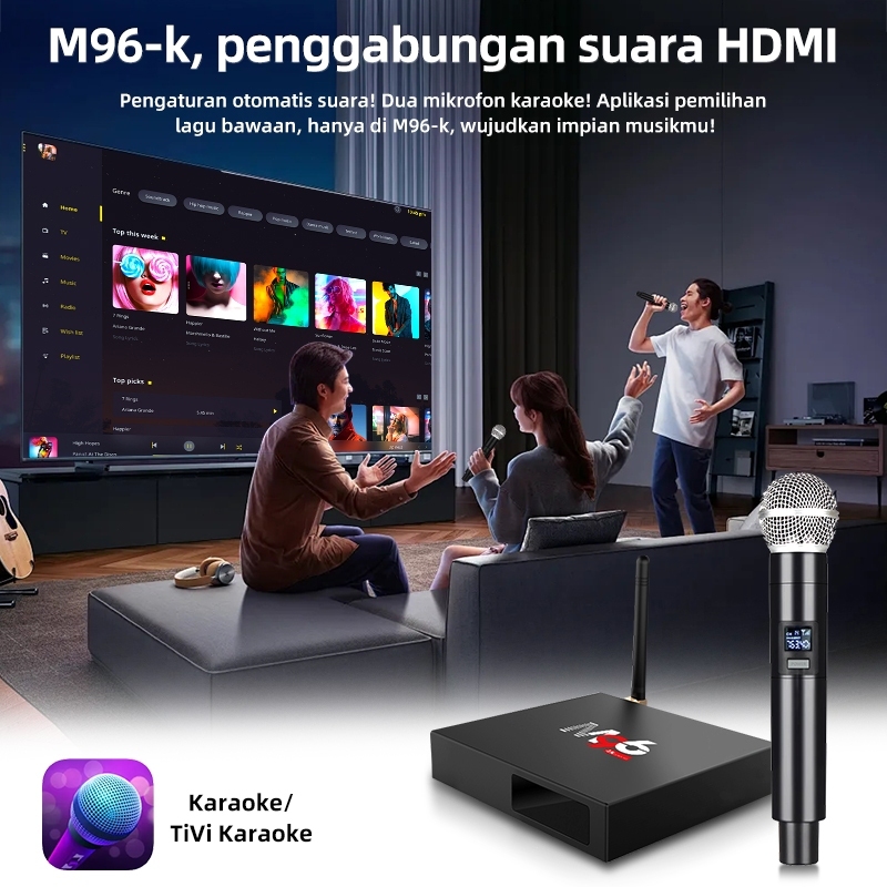 Tripsky M96-K Android tv Box Karaoke Keluarga Speaker Bluetooth 2Mic 1 Set wireless mikropon karaoke