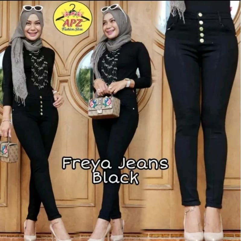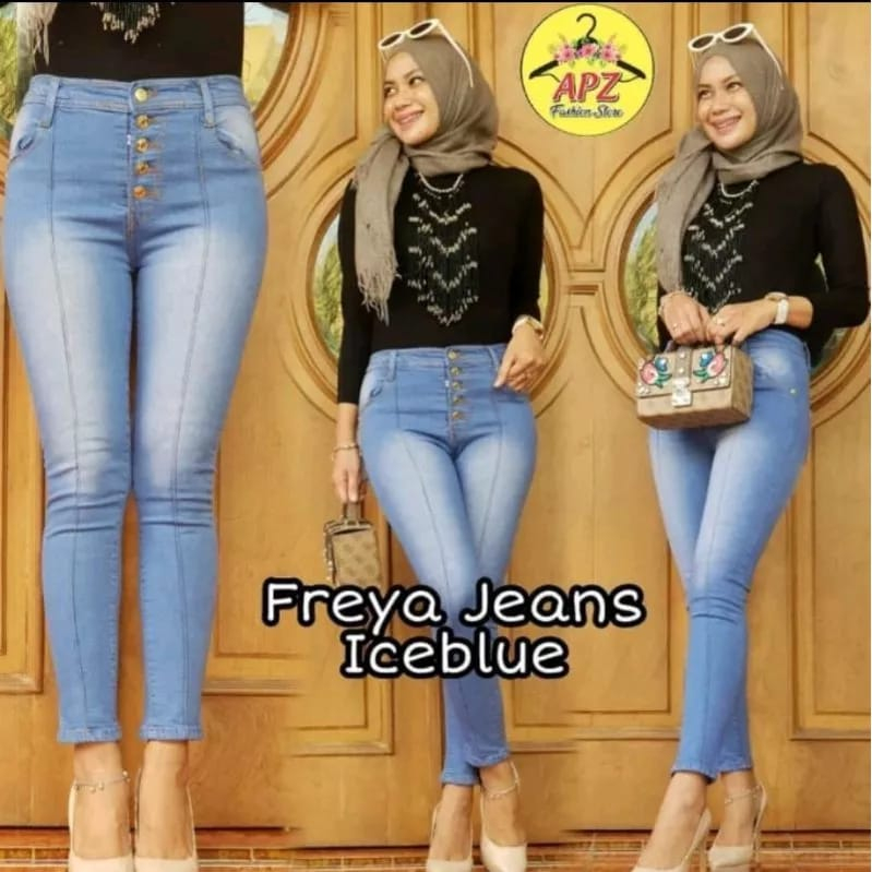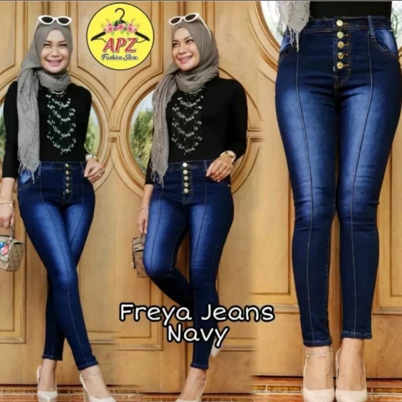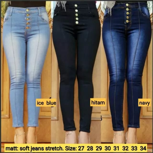 CELANA JEANS KANCING 5 AKTIF STRECTH HW //CELANA JEANS HIGWAIST WANITA