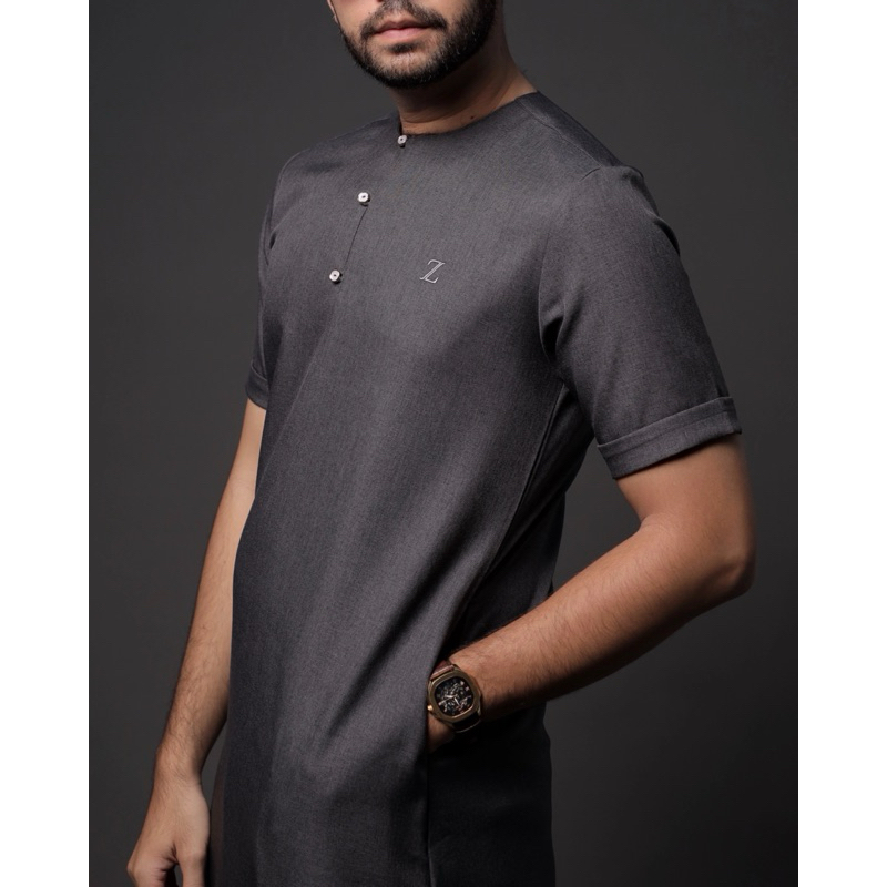 Jubah Omer Short Sleeve Dark Grey by Zaafer Indonesia