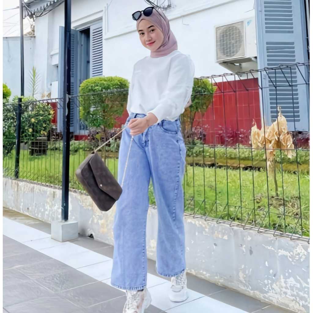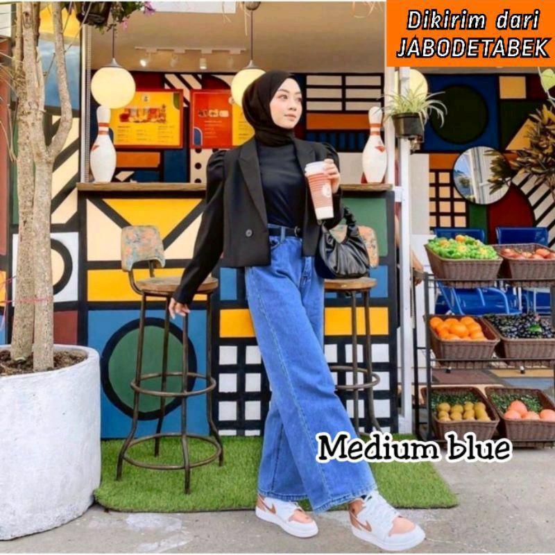 Celana Jeans Wanita Kulot Lipat Polos (Size 27-34 ) Celana Highwaist Panjang Tebal Wanita Hitam Nyaman