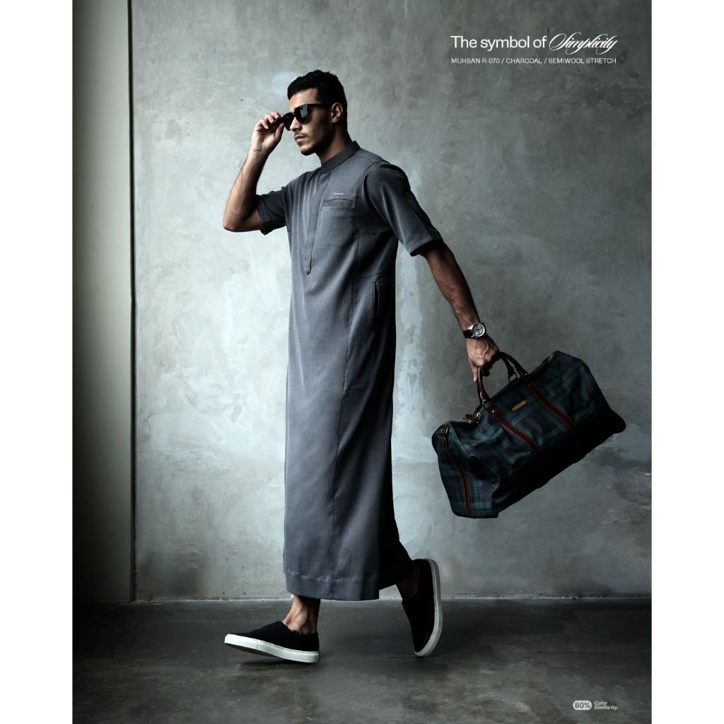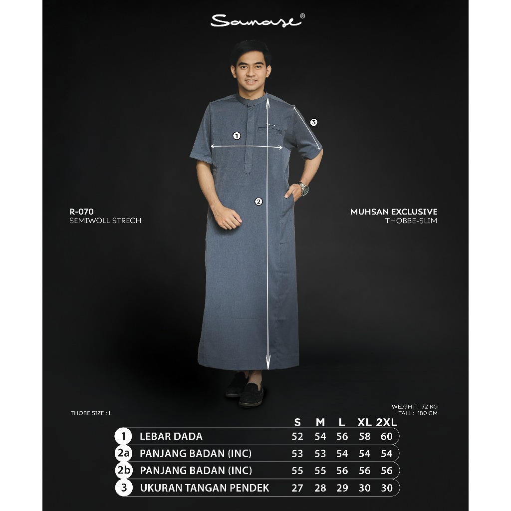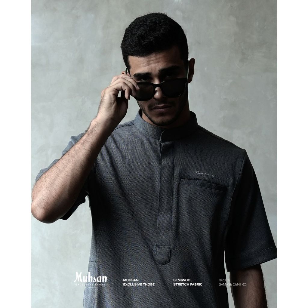 Samase Jubba Saudi Premium Muhsan Exclusive Thobe Lengan Pendek R070 Semiwool Stretch