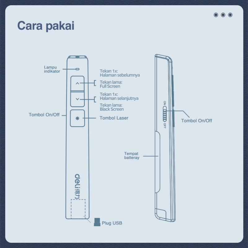 Deli Laser Pointer + Presenter Wireless USB Pen Laser Presentasi PPT Sinar Merah Jarak 30 M 2802