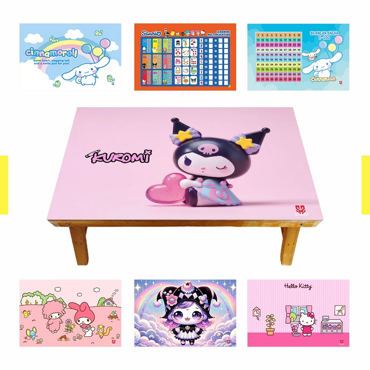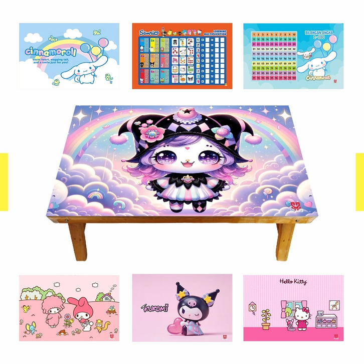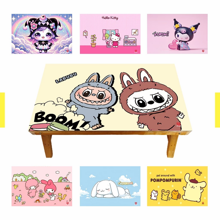 Meja Belajar Kuromi Labubu Pochacco Pompompurin My Melody Cinnamoroll Kitty Keroppi Anak Lipat Kayu
