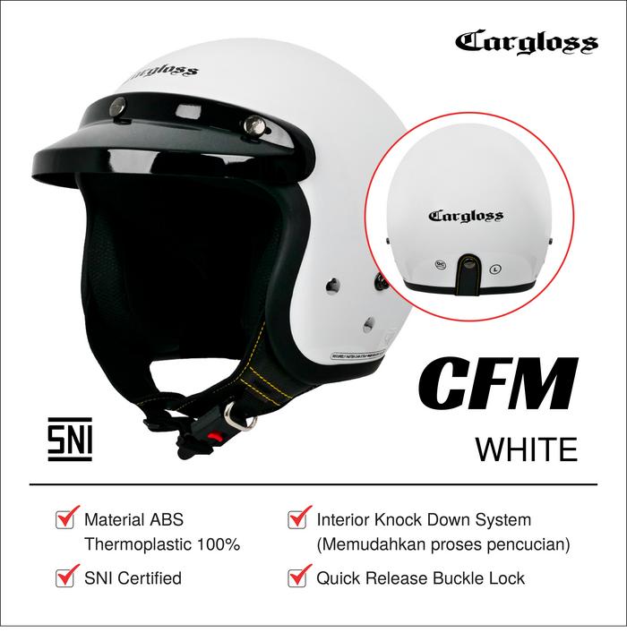 Helm Cargloss Original CFM Retro Half Face - Army SP. Whity White (Glossy) Motor Motorcycle - L, White