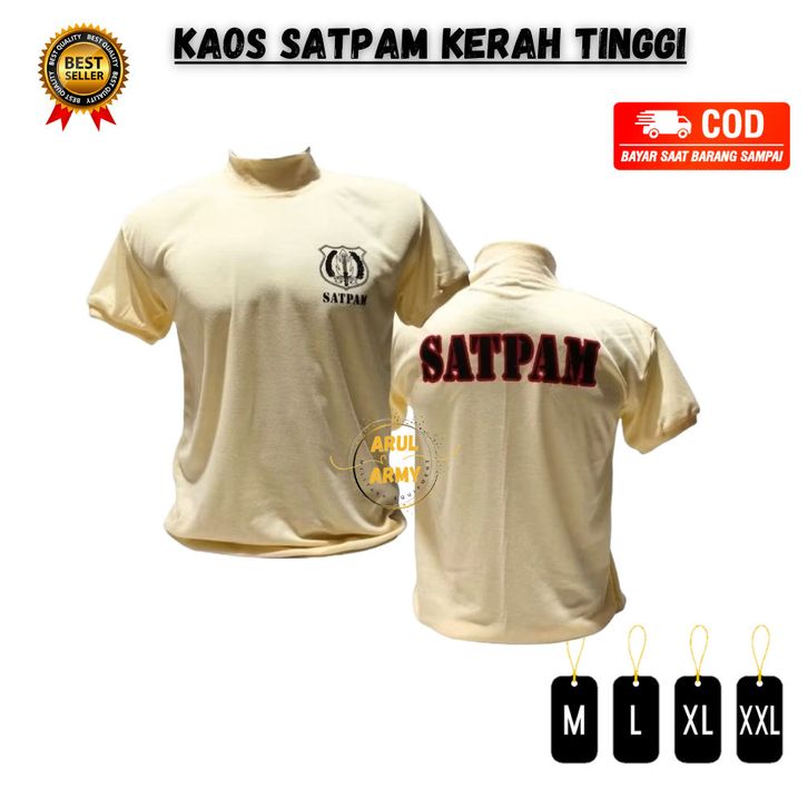 Baju Kaos Satpam Security Krem Cream Kerah Tinggi Terbaru Kaos Dalaman Seragam Satpam Security kerah tinggi baju
