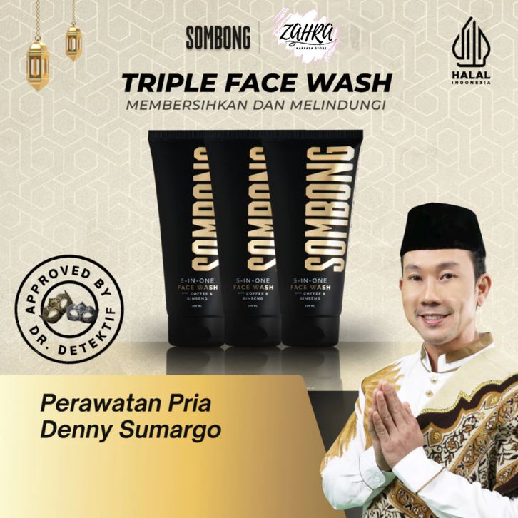 TRIPLE SOMBONG 5-in-1 Face Wash with Coffee & Ginseng Sabun Pembersih Wajah Pria 100 ml