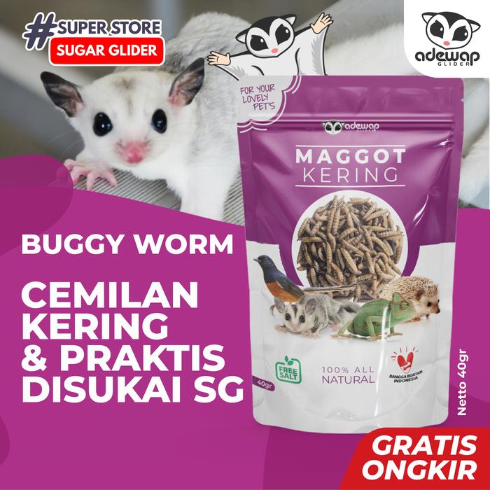 MAGGOT KERING BSF / CAMILAN PROTEIN SUGAR GLIDER / MAKANAN SUGAR GLIDER - 40 GRAM
