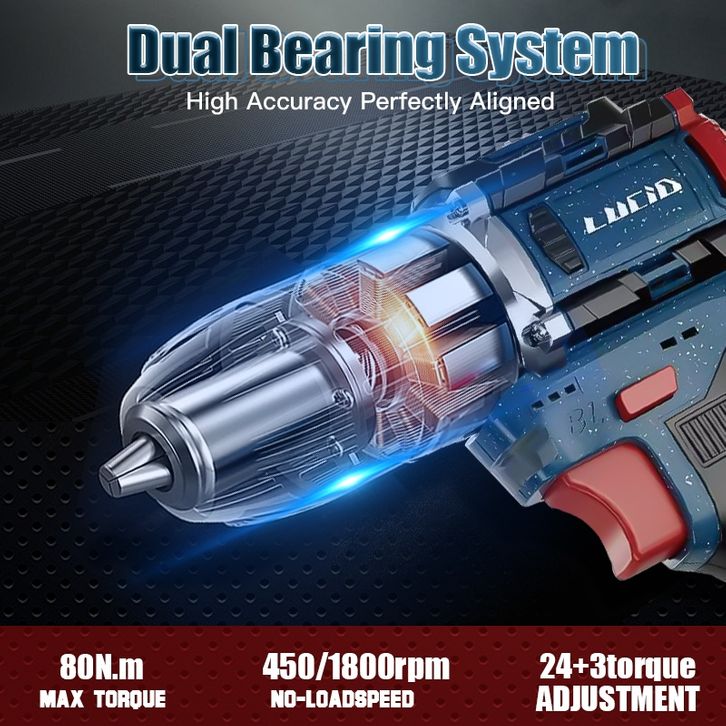 Bor Impact Multifungsi LUCID LX-50 Cordless Mesin Bor Baterai 80N.M13MM 2.0A 18V Li-ion Impact Drill Brushless Pocket Ro