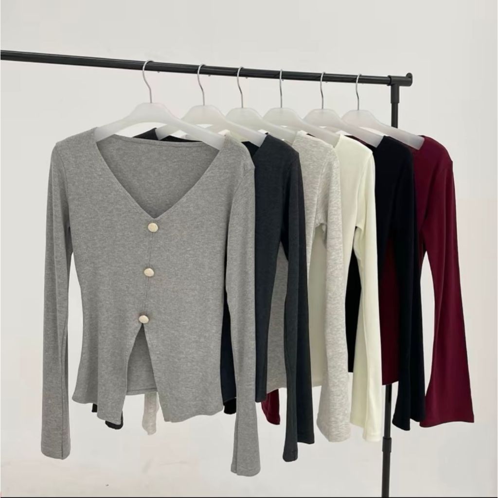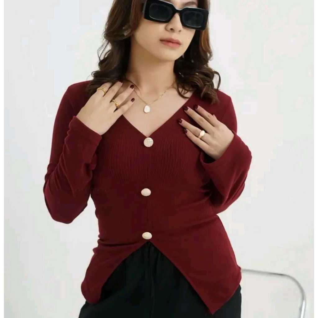 Atasan rajut Blouse wanita lengan panjang long sleeve Knit crop top