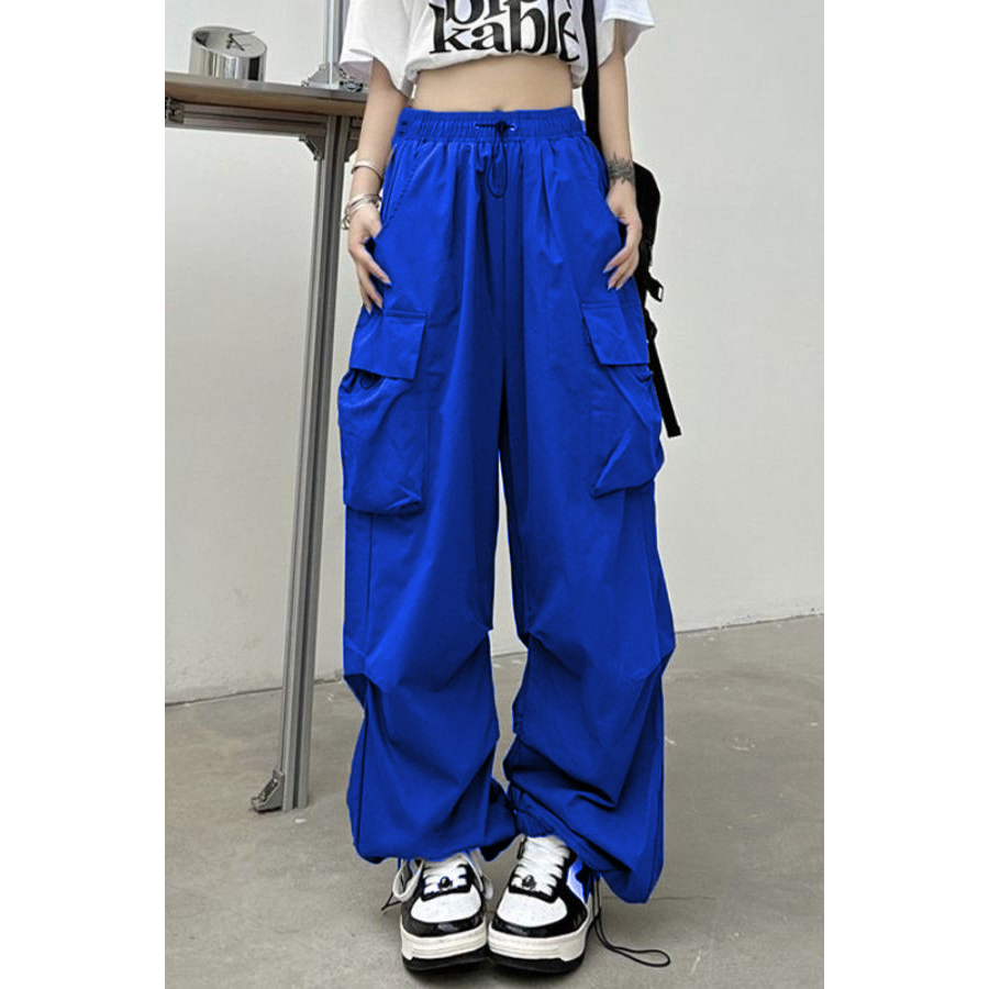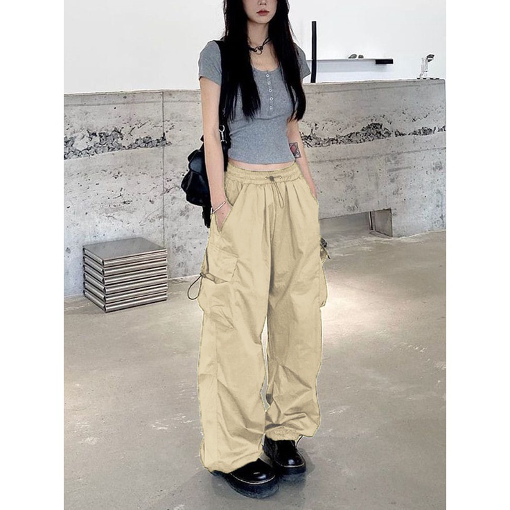 celana cargo kasual harajuku Teachwear Stretwear pria wanita