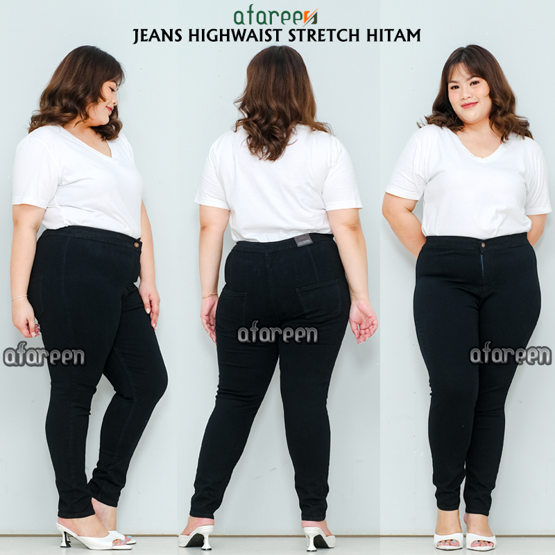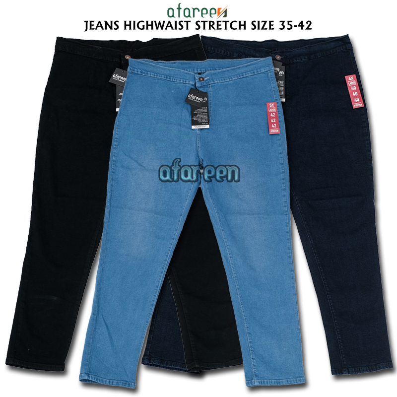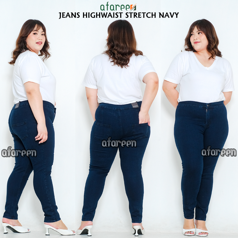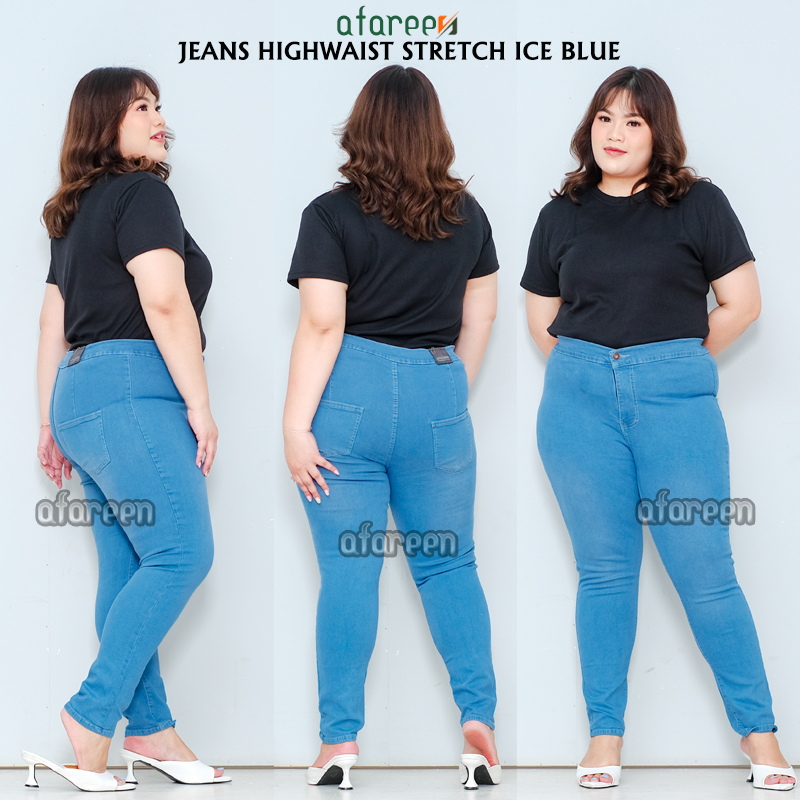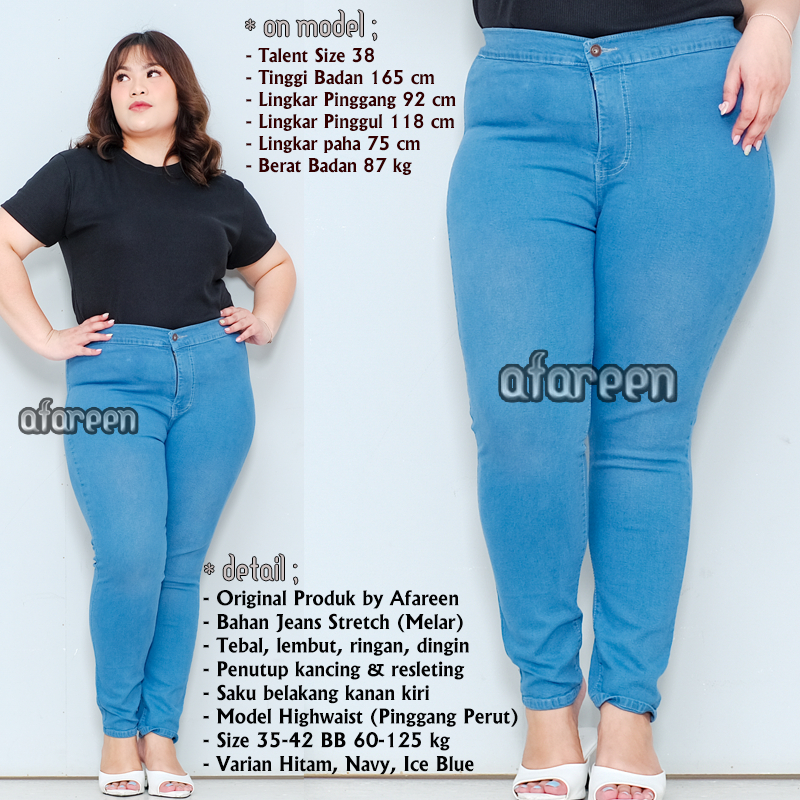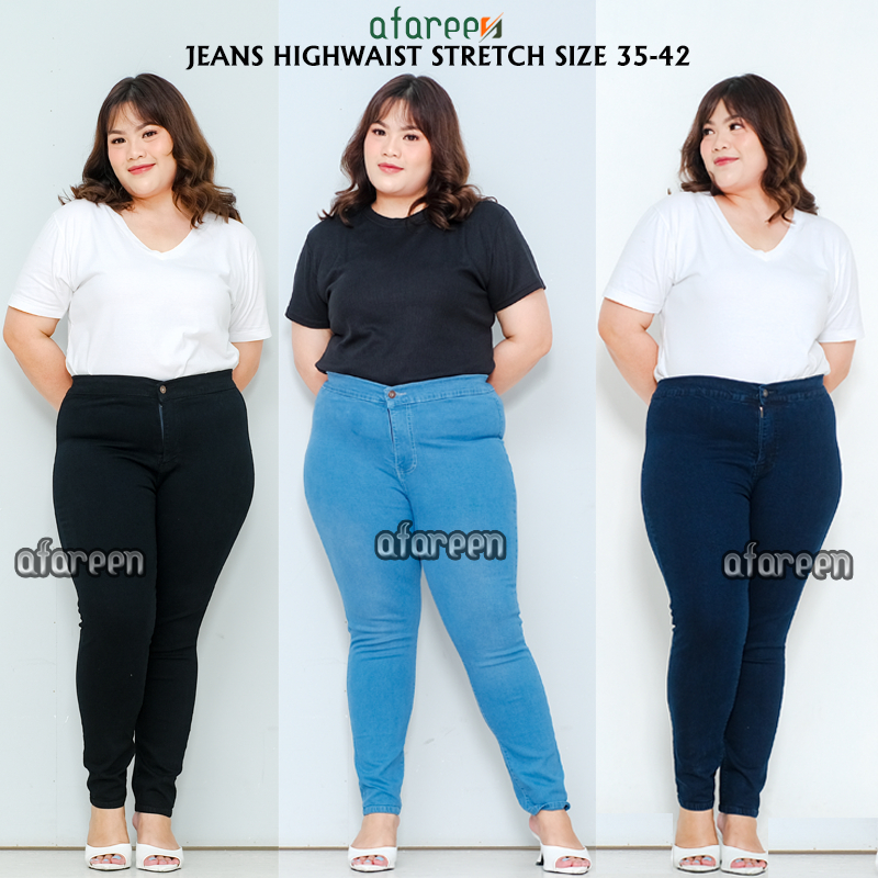 AFAREEN - Celana Jeans HW Celana Haighwaist Wanita Jumbo Melar stretch Body Goal 35-43