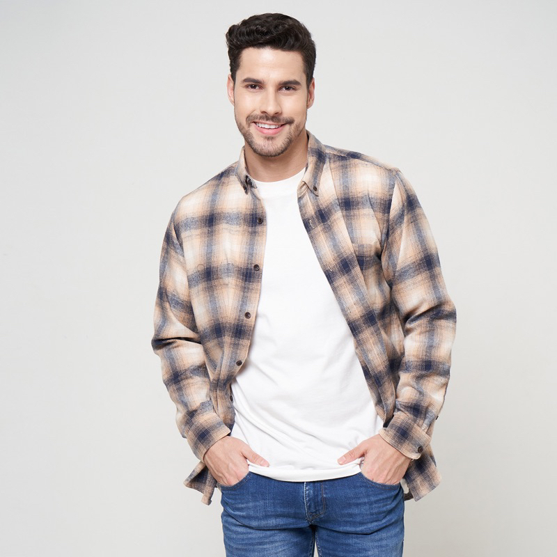 Peternation kemeja flanel wool basic panjang regular fit f1033