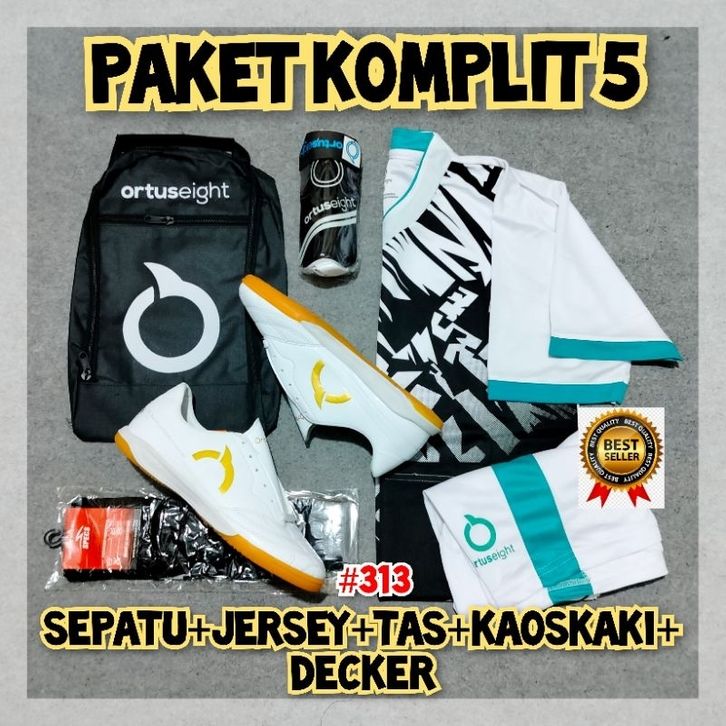 Paket komplit 5 sepatu olahraga FUTSAL+KAOSKAKI+SETELAN+DECKER+TASJINJING