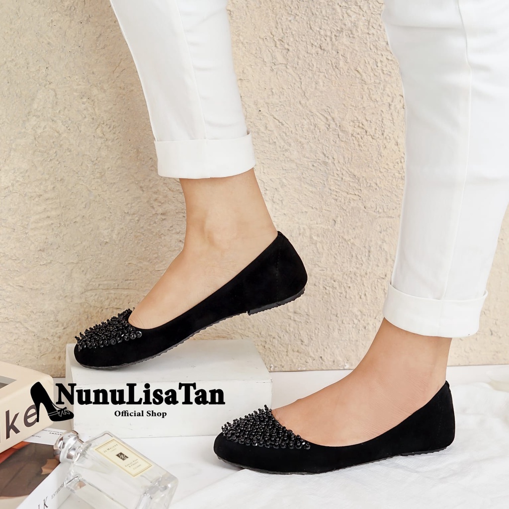 NunuLisaTan MOTE - Balet flat shoes sepatu wanita teplek casual simple polos trendy hitam
