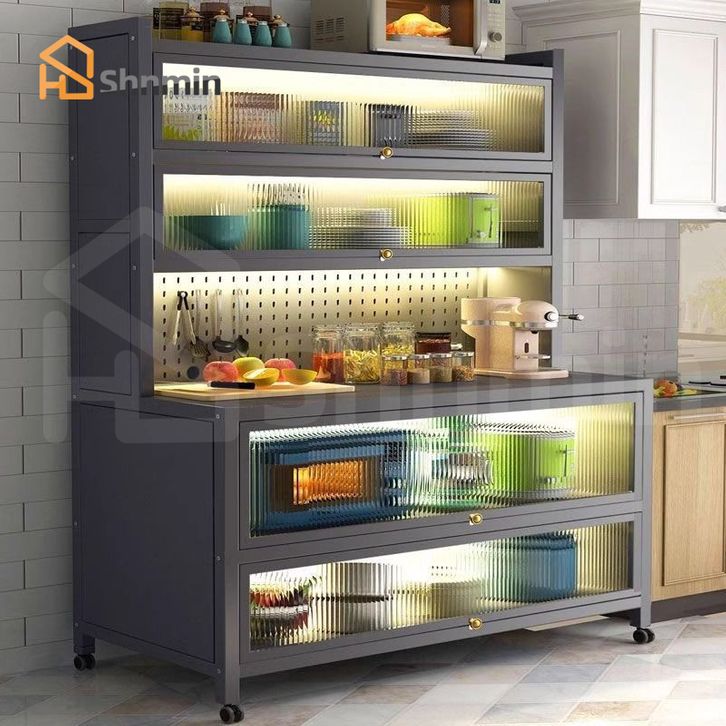 SHNMIN Dapur Minimalis Rak Oven Microwave Rak Kabinet Dapur Rak Dapur Anti Debu Lemari Dapur Dengan Pintu Rak dapur