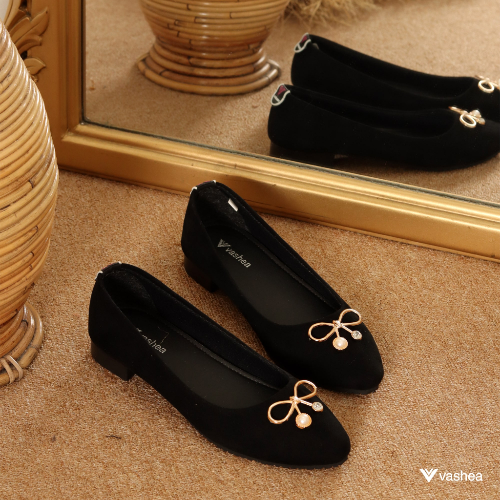 Vashea Kanao Flatshoes Wanita Cantik Sepatu Kerja Elegan Hak 2cm
