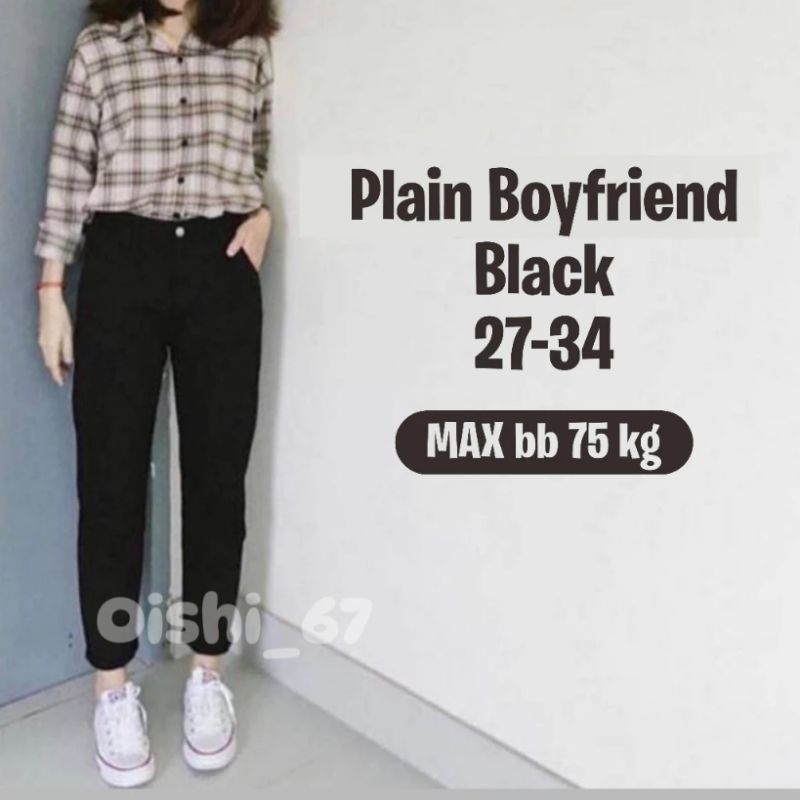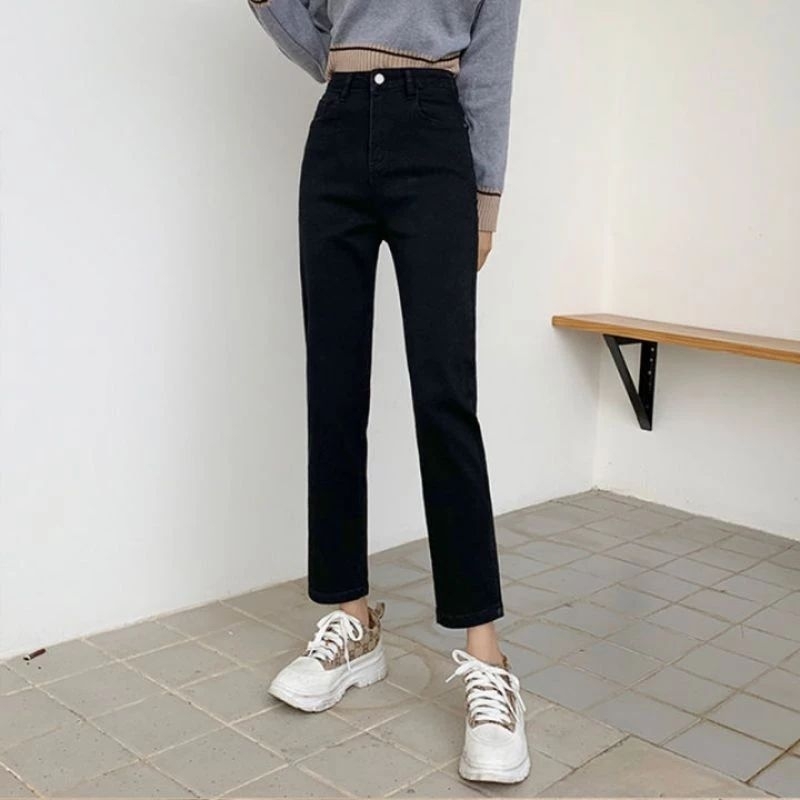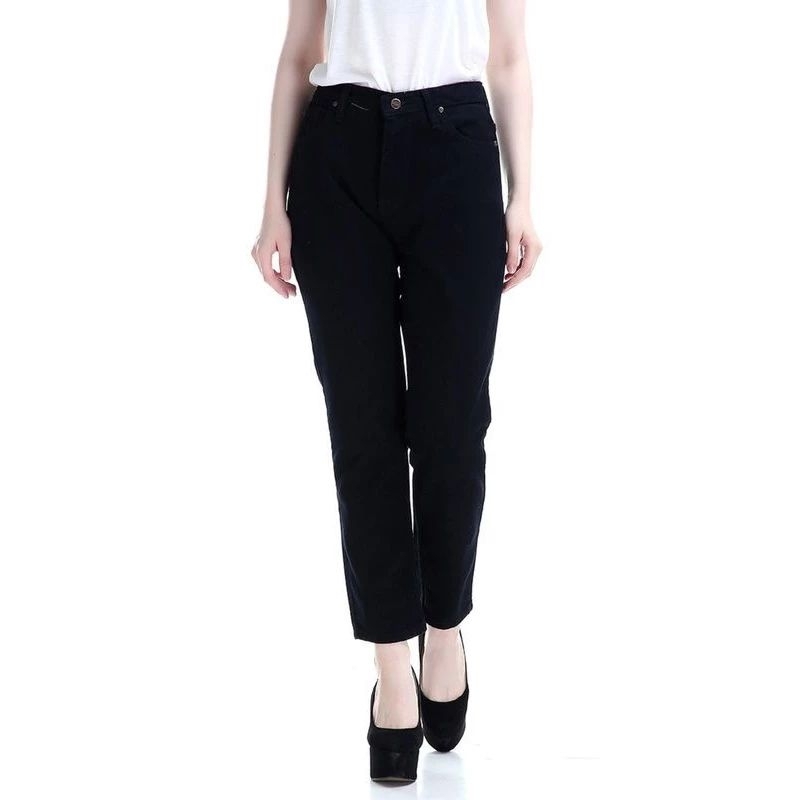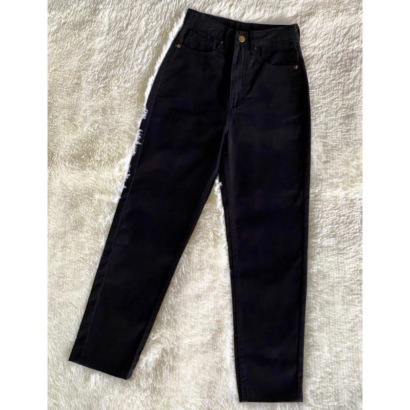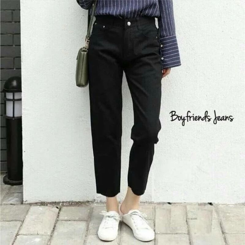 Celana Wanita Highwaist Boyfriend Jeans Hitam pekat