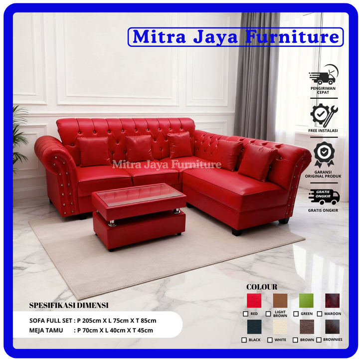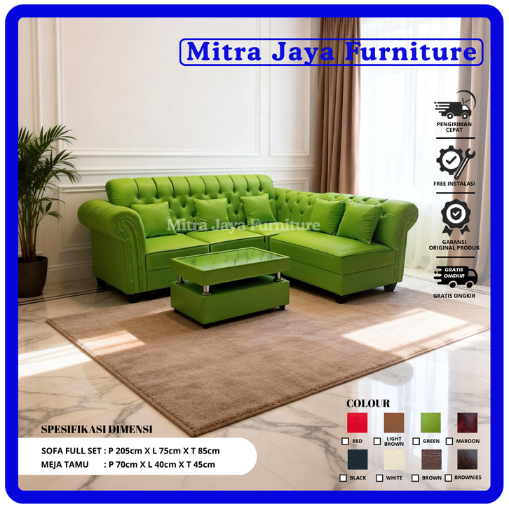 SOFA KANCING/SOFA FREE ONGKIR/SOFA L/SOFA MINIMALIS/SOFA HIJAU/SOFA MURAH/ Mitra Jaya Furniture