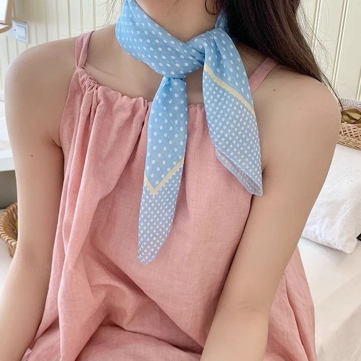 ORIGINAL Simpel Lucu Ins Polkadot Syal Korea 70x70cm Jilbab Segiempat Scarf Vintage Gaya Sastra Bandana Korean