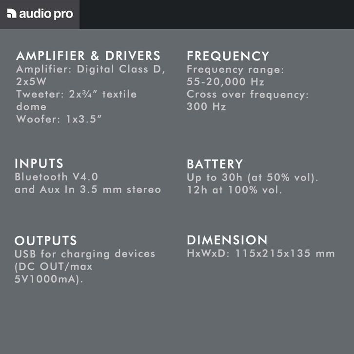 Audio Pro Addon T3+ T3 Plus AudioPro Portable Bluetooth Speaker