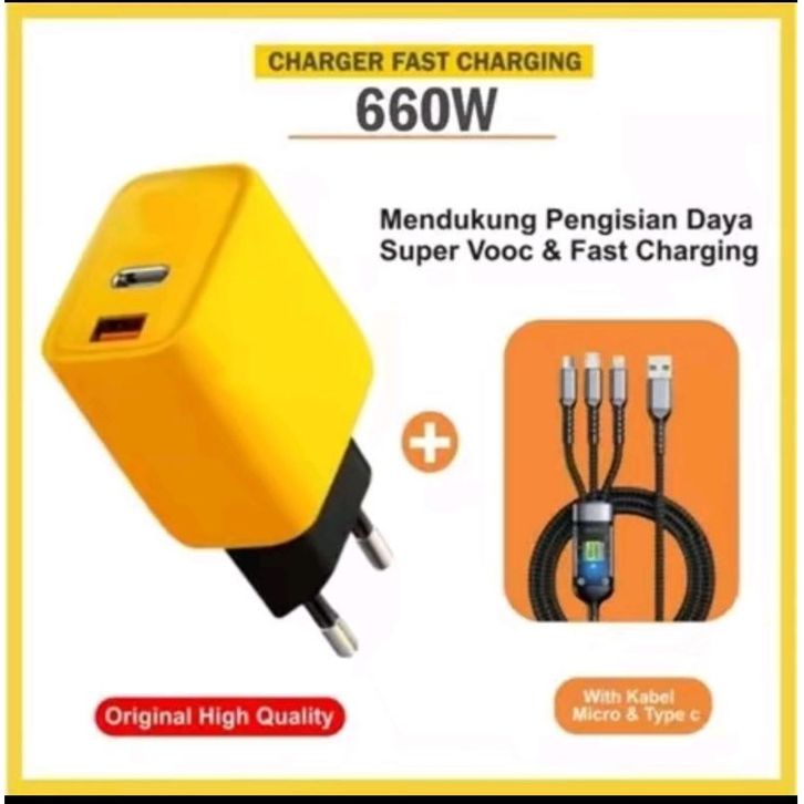 charger type c iphone fast samsung Charger 660W Batok RG-22 + Kabel Data 3in1 Fast